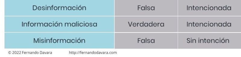 Y también porque creo que la desinformación no es solo información falsa. Es también información errónea o engañosa que se difunde con o sin intención de engañar o manipular, abarcando tres categorías: